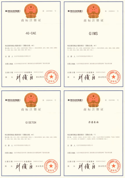 日前,經過我公司申請及上級工商行政管理部門的審核,公告等,北京丹普表面技術有限公司現正式獲得了國家工商行政管理總局頒發的“丹普表面”、“4G-CAE”、“GIMS”、“GISETCH”商標注冊證書。