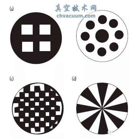 在有些情況下,不易制備大面積的均勻合金靶、化合物靶,這時可以采用由單元素組成的復合鑲嵌靶,靶表面的構成如圖1所示。其中圖d所示的扇形鑲嵌結構效果最好,易于控制膜的成分,重復性也好。從原理上講,不僅二元合金,三元、四元等合金膜都可以用這種方法制取。