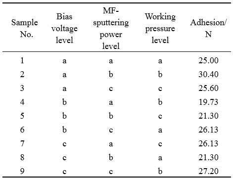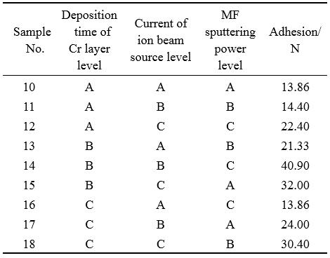 表 6  界面 Cr 層附著力正交分析結果