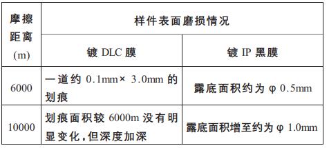 表 3 DLC 膜與 IP 黑膜耐磨性對比