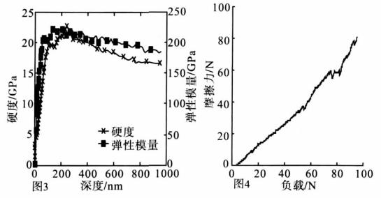 圖3 摻鎢DLC膜的硬度及彈性模量