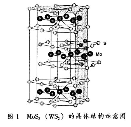 作為固體潤滑劑,MoS和WS(晶體結構如圖1)以其摩擦系數低和承載能力強等特點,被廣泛應用于制造軸承、陀螺、齒輪零部件等超高真空領域。但是,由于MoS2和WS2在大氣中容易氧化失效,使其在大氣中的應用受到了限制。研究表明,與金屬共濺射制備復合薄膜可顯著改善其在大氣條件下的摩擦磨損性能。Ag-WS2共濺射制備的非晶態復合薄膜,由于Ag彌散分布于WS2薄膜中,增強了薄膜的致密性,使薄膜在大氣中尤其在潮濕空氣中抗磨損性能有了很大提高。MoS2-Ti共濺射薄膜,提高了薄膜的硬度,對磨屑的產生起到了抑制作用,并且有利于轉移膜形成,提高了薄膜耐磨壽命。最近,尹桂林等制備了WSx(其中x=1.6)復合薄膜,使得復合薄膜結構更加致密,具有較好抗氧化性,同時使得基面層間間距增加,因而摩擦系數降低。T.Polcar等開展了MoS2/C和WS2/C復合薄膜的研究,WS2/C復合薄膜在100℃的溫度條件下最低摩擦系數達到0.02,擴展了其在高溫條件下的應用范圍。