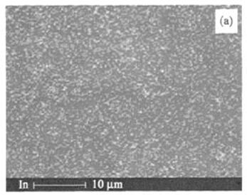2.2、多層膜的形貌從電子探針EPMA的直觀圖形可知,圖2(a)和(b)中自點為試樣表面的zn元素分布,經(jīng)過二次浸鋅后的鋁合金表面鋅層分布均勻圖2(a),幾乎覆蓋了整個鋁合金表面;圖3為二次浸鋅后的表面形貌圖,鋅層致密分布。由于是化學鍍,鋅的晶粒尺寸比較大,表面凸凹不平,但是可以為后面的化學鍍鎳形成機械咬合作用,經(jīng)過退火后更容易擴散互滲。